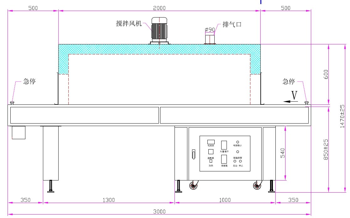 2. 發(fā)熱管安裝在工件上方